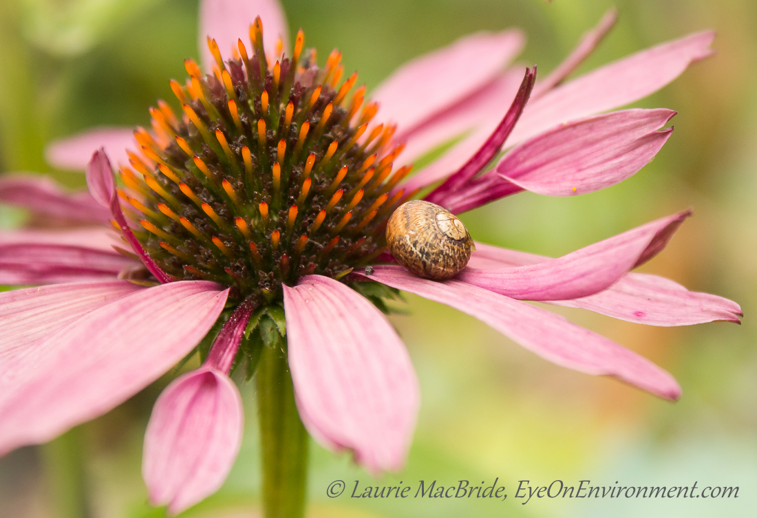 So I guess I shouldn’t be surprised at the tiny snail that scaled “Mount Echinacea”. These wandering mollusks are adventurous souls, it seems.