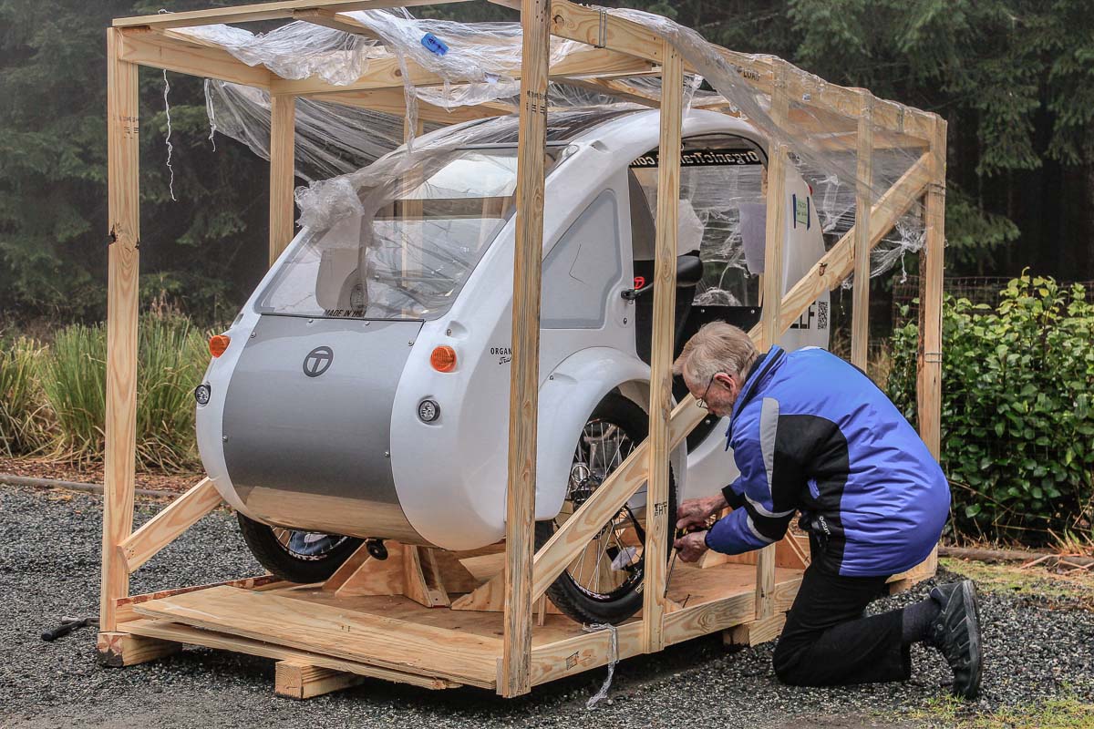 It’s not just because he’s well-liked on the island – though he definitely is. The buzz is because of his hot new wheels: an electric-assist ELF tricycle, which arrived on a foggy morning in early January.