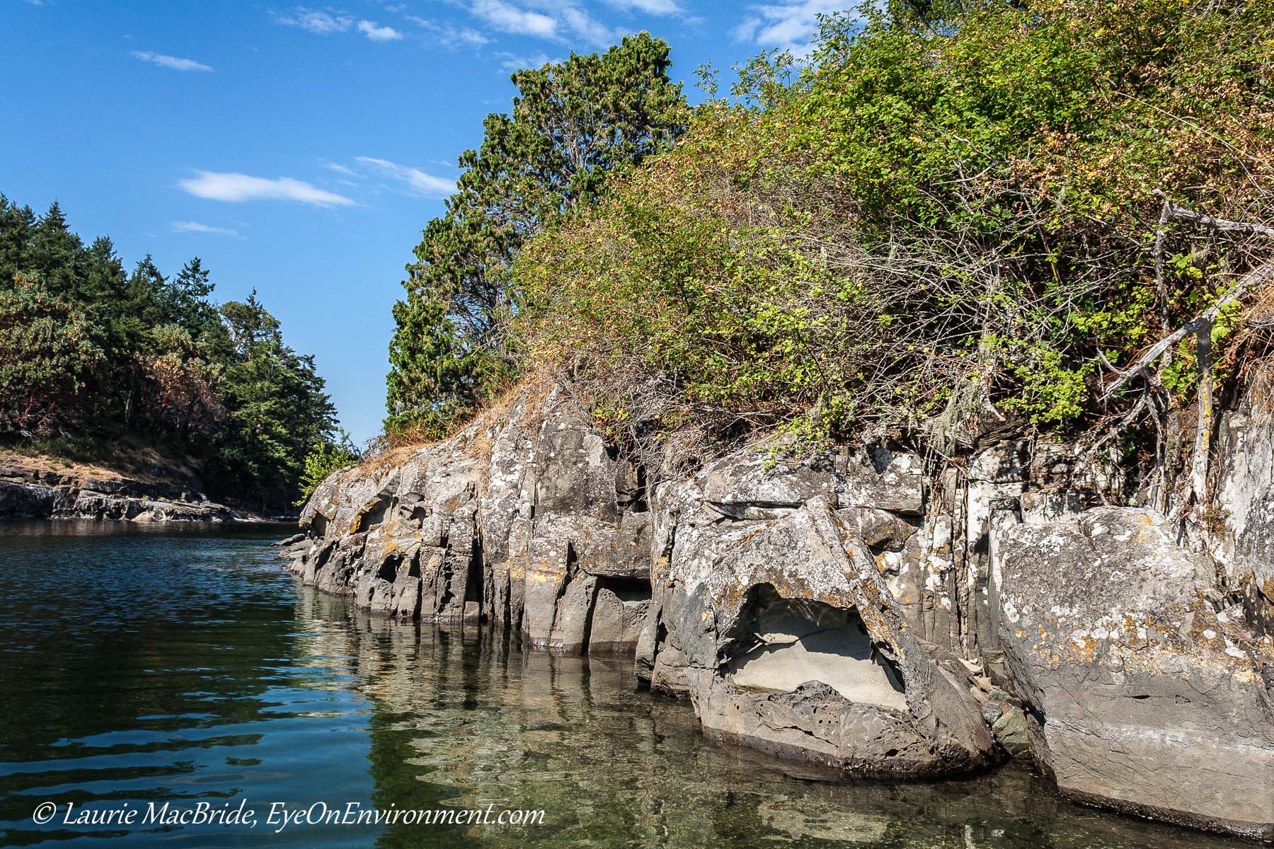 When the tide is right, you can find some pretty interesting “faces” along many stretches of shoreline in the Gulf Islands. This one, off Portland Island, jumped out at me when I was rowing our dinghy there this summer – though I’m not sure whether its open mouth was welcoming me or warning me off.