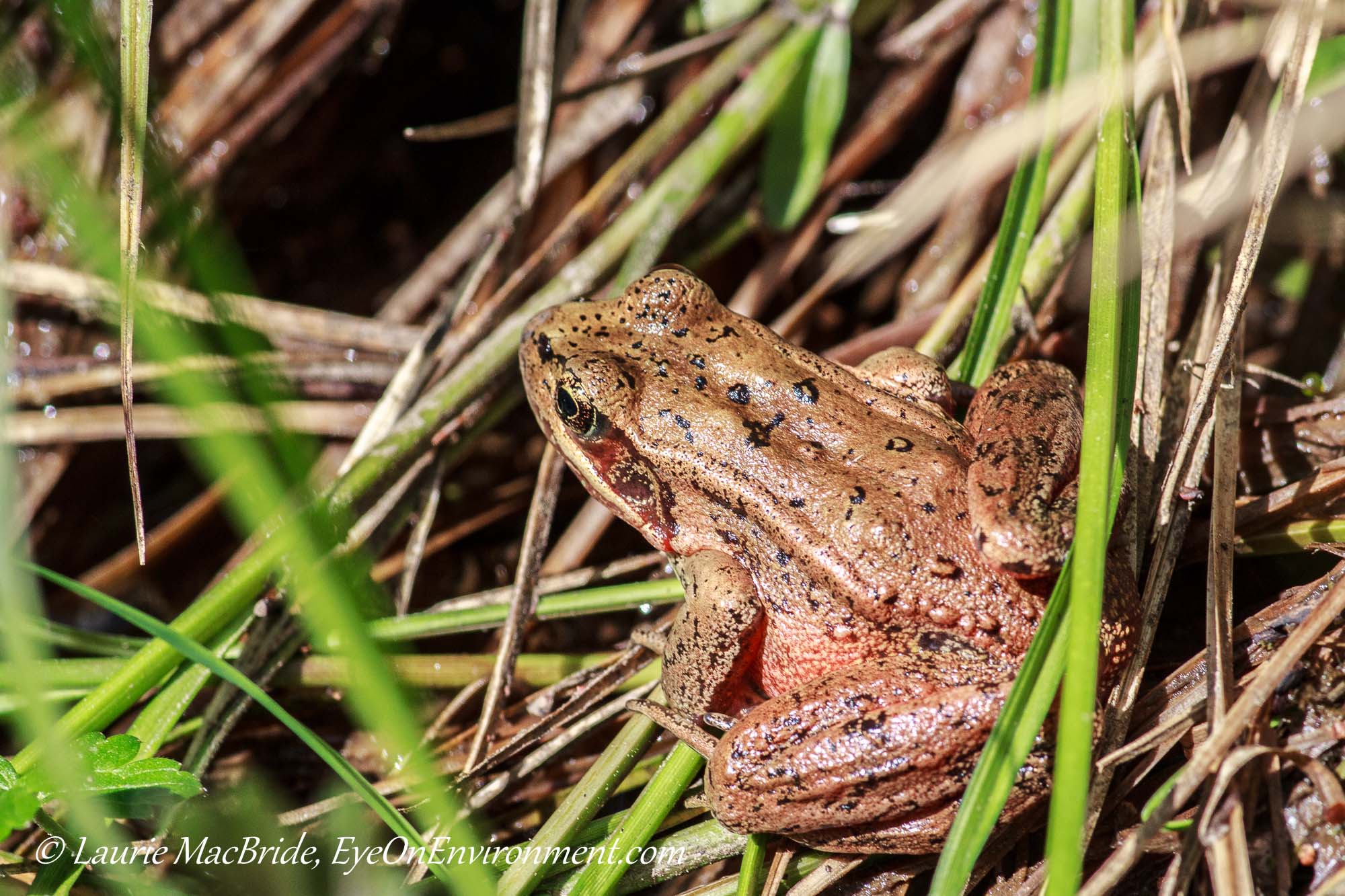 Red-legged frogs need the still waters of ponds or marshes to breed. Once that deed is done, the adults can enjoy the sunshine on the banks or leave the pond if they prefer. But it’s a different story for their young, who hatch about 40 days later. These tadpoles must then remain immersed for another 80 days as they grow their legs and morph into frogs. That means that unless breeding has occurred earlier than usual, they need water in the pond through most of June.