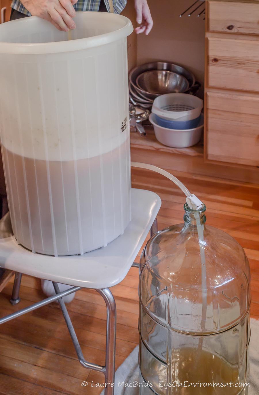 Over the next couple of months we rack three or four more times, moving the wine from one carboy to another, and adding a fining agent at the appropriate time.