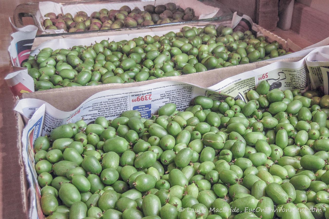 From just five kiwi plants, the haul included copious amounts of the standard variety (shown above and left) as well as the smaller, green Issai hybrid (below).