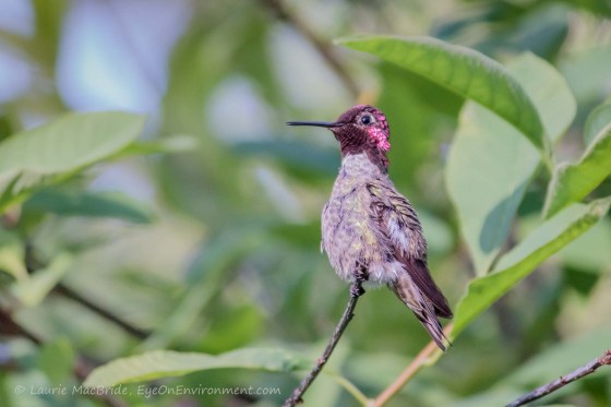 Earlier this summer he had to keep up a relentless pace, but now that the Rufous hummingbirds have gone south, the airspace is a lot less crowded. He can take life a bit easier these days, needing only to keep other Anna’s in line.