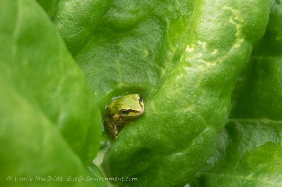 Unlike the bees and hummers, Pacific chorus frogs are pretty quiet these days. But that doesn’t mean they’re absent. Many, like this little one, are in our garden, doing their best to stay safely invisible to larger creatures – while working hard to keep our pesky bug population down.