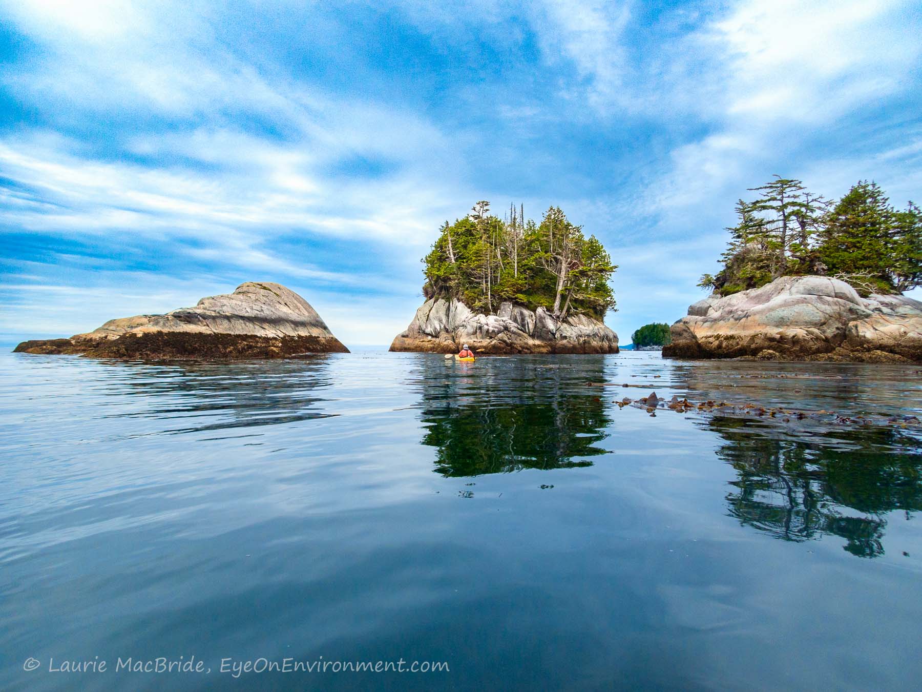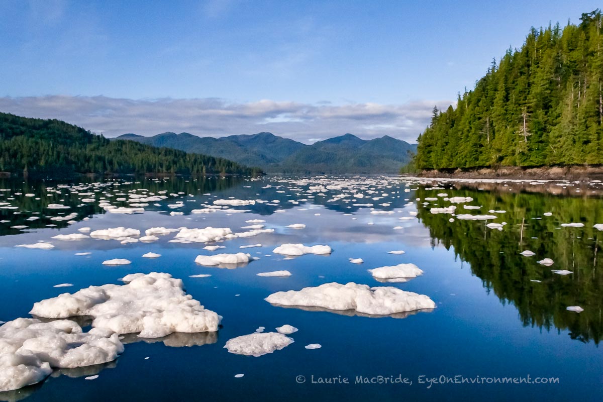 But the weather gods weren’t on our side. Fog dogged us through the narrow channel west of Kenneth, making it nerve-wracking to spot the multiple drift logs swirling about in the current, which was now against us as well.